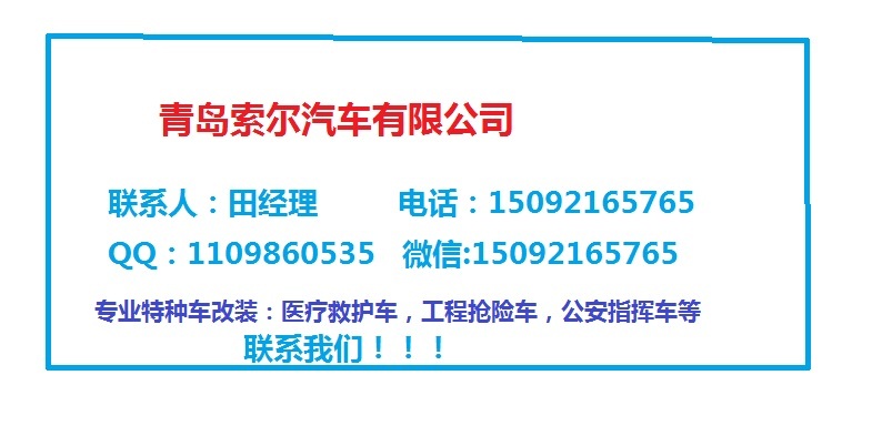 青島索爾汽車有限公司目前公司產(chǎn)品涵蓋:醫(yī)療車系列,公安警務(wù)系列,工程搶險(xiǎn)系列,通信指揮車系列,檢測(cè)車系列,產(chǎn)品展示車及路演車系列等,擁有多項(xiàng)設(shè)計(jì)專利。產(chǎn)品廣泛應(yīng)用于醫(yī)療衛(wèi)生、公檢法司、武警軍隊(duì)、天燃?xì)、通信、石油、消防、水利電力、地質(zhì)海洋勘察等領(lǐng)域。 公司于2008年12月通過ISO9001:2000質(zhì)量管理體系認(rèn)證,2009年4月初通過國家認(rèn)監(jiān)委“CCC”產(chǎn)品強(qiáng)制性認(rèn)證。公司始終堅(jiān)持誠信經(jīng)營、品...