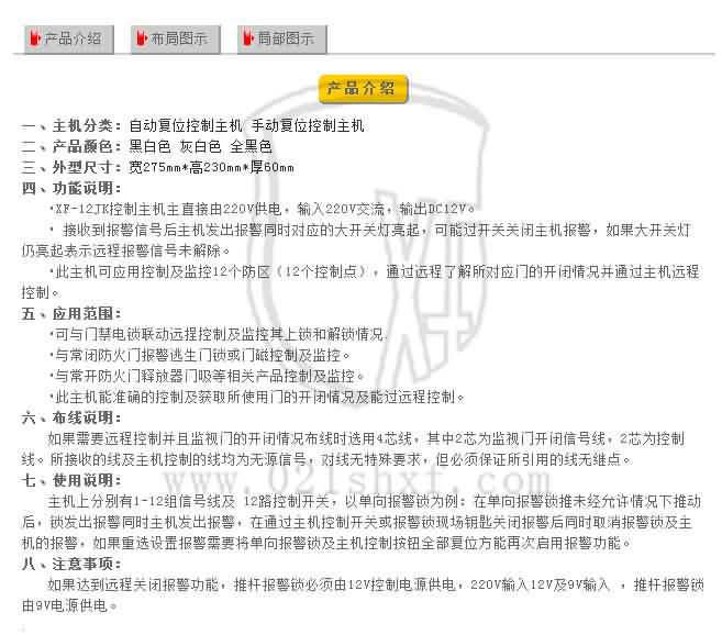 *此主機可應(yīng)用控制及監(jiān)控12個防區(qū)(12個控制點),通過遠(yuǎn)程了解所對應(yīng)門的開閉情況并通過主機遠(yuǎn)程控制。