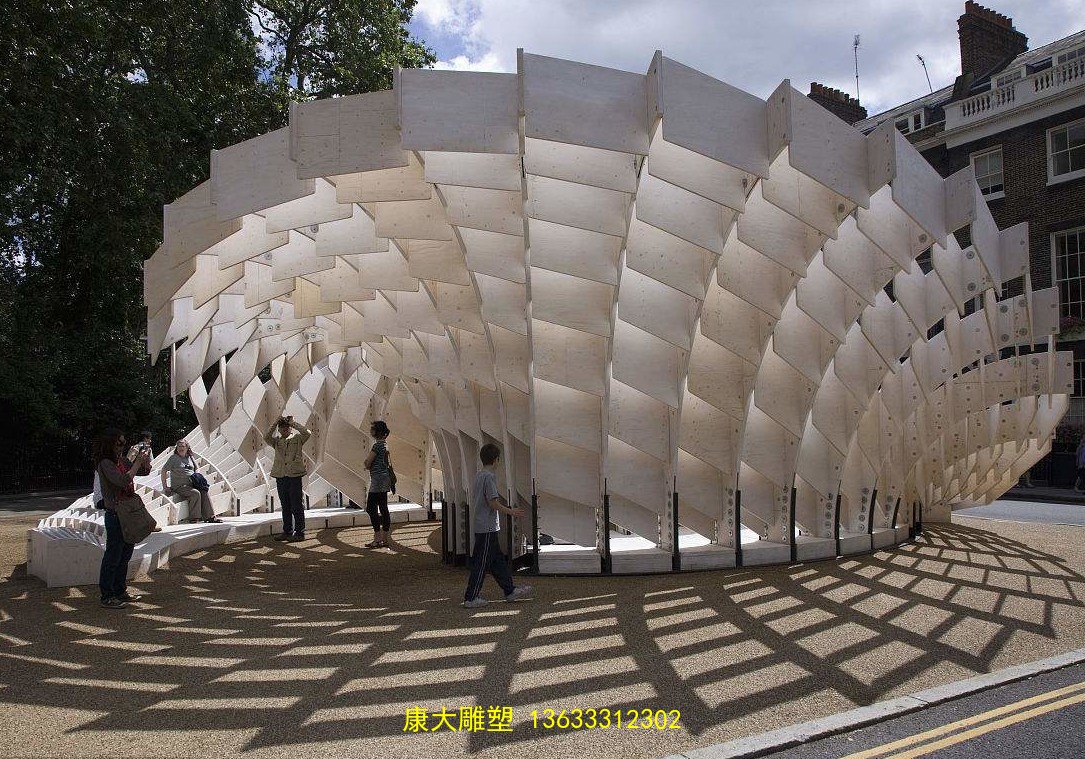 大型景觀不銹鋼雕塑由于體量龐大,通常情況下不應(yīng)按部就班,而是采用邊做模型,邊翻制,邊運輸,邊加工,邊安 裝的生產(chǎn)加工一條龍的操作程序。只要工序合理,管理人員到位,可大大提高工作效率,縮短施工周期。