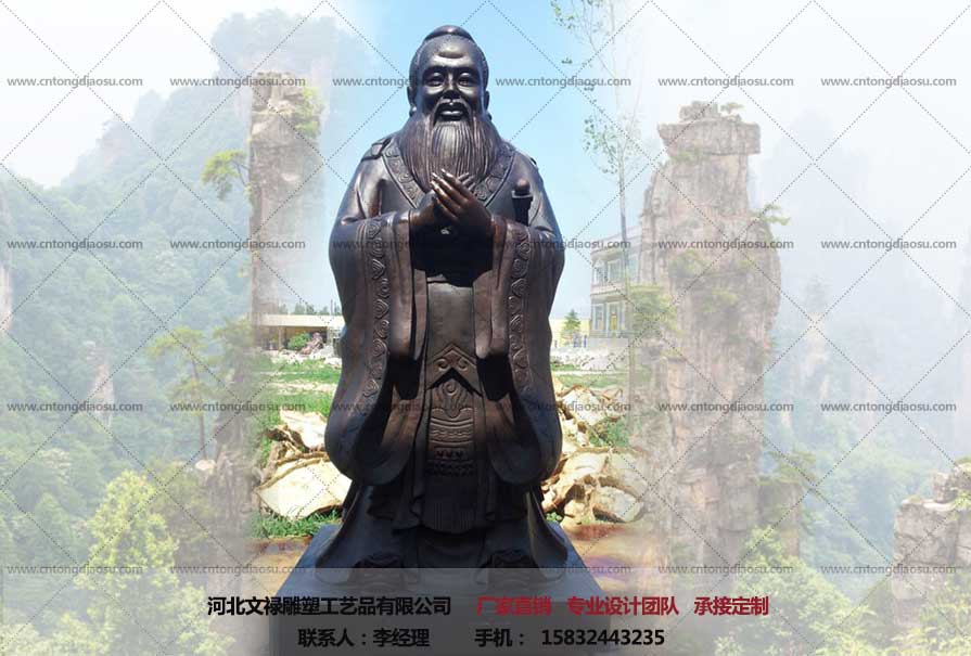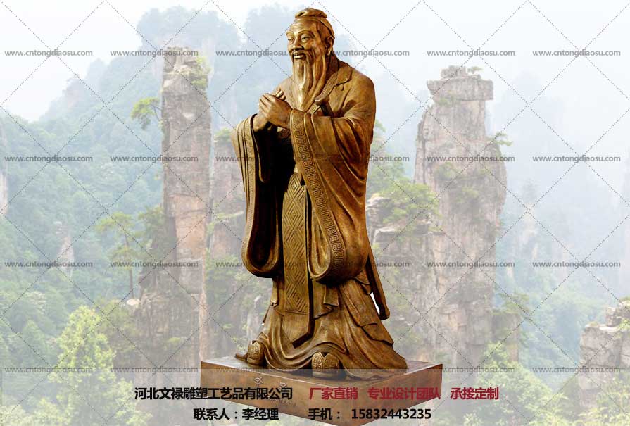 孔子,是我國歷史上偉大的教育家、思想家,開創(chuàng)了私人講學的風氣,是儒家學派的創(chuàng)始人,也是儒家思想的開創(chuàng)者,被后世統(tǒng)治者尊為“孔圣人”、“至圣”、“ 至圣先師”、“萬世師表”,是“世界十大文化名人”之首,對中國的歷史影響巨大,他代表著一個時代,代表著一種文化,千百年一直被人類所敬仰,銅雕孔子像造型有很版本,主要以雙手交叉于胸前的標準銅雕塑居多,是諸多校園雕塑中的主要組成部分,占據(jù)著重要地位,孔子雕塑出現(xiàn)在校園,以激勵學子們奮發(fā)圖強,自強不息,有著精神上的鞭策及指導意義。