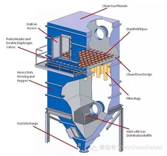 布袋除塵器在新濾袋開始使用時(shí),是依靠織物孔隙中伸出的纖維與塵粒之間的慣性碰撞,直接截留,靜電吸引,布朗擴(kuò)散等作用捕集粉 塵的;當(dāng)織物上形成一層粉 塵層后,則主要依靠粉 塵層的篩分作用捕集粉 塵。在現(xiàn)有用于排氣凈化的各種除塵器中,布袋除塵器的除塵效果是比較好的,特別是它捕捉粒徑1um以下微細(xì)塵粒的能力,較之同為高效除塵器的電除塵器和高壓文丘里除塵器猶高出一籌。