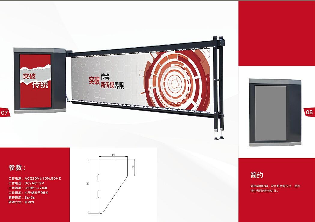 廣告 燈箱和翻板廣告 裝配有l(wèi)ed燈帶,采用白天關(guān)燈,夜間開(kāi)燈,可調(diào)時(shí)間段控制,能省電。多種控制方式,可供用戶(hù)選擇,既可用外接控制盒按鈕實(shí)行對(duì)道閘升、降、防風(fēng)、停的手動(dòng)控制,也可選擇遙控裝置,對(duì)道閘的運(yùn)行進(jìn)行遠(yuǎn)距離控制。
