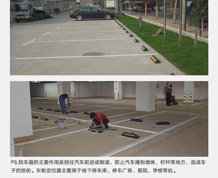 車輪定位器又稱車輪擋輪器、倒車墊、阻位器、擋車器等,橡膠車輛定位器用于停車場和車庫,在車輛停車入位時,輪胎觸及定位器,使車輛準(zhǔn)確、整齊的停在車位上。車輪定位器安 裝在停車位后方以限定車輛準(zhǔn)確停放到最佳位置,橡膠不會損壞汽車輪胎,比起鐵制品更安 全耐用且永不生銹,醒目美觀,安 裝方便。坡體有一定柔軟度,可以使車輛減輕對輪胎的磨損,是目前限定車輛準(zhǔn)確停放位置的最佳設(shè)施。