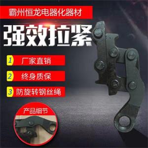 3)適用范圍大。可以適用鋼絞線,也可適用鋼芯鋁絞線。適用導(dǎo)線/地線截面16-70 mm2(直徑4-12mm), 額定拉力15kn,安 全系數(shù)3,**拉力45kn,重量1.1kg