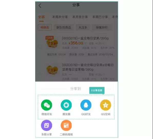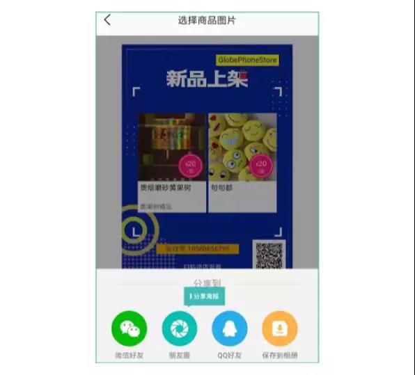 3、如果您的客戶還沒有習(xí)慣使用旺鋪,還是習(xí)慣于微信中查看圖片訂購時,此時您就可以依據(jù)客戶分析、商品分析,選擇商品以海報形式分享給指定客戶、微信群、朋友圈等,客戶可線下訂購,也可長按海報打開旺鋪進(jìn)行購買。