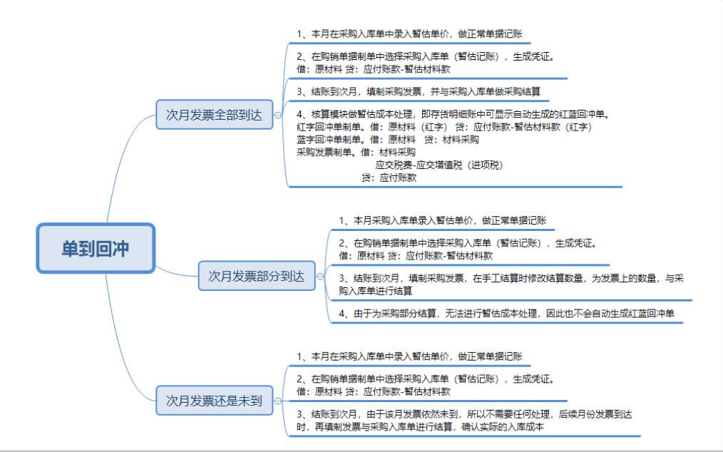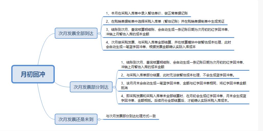 與部分發(fā)_票_到達的處理方式一致,均為在月初和月末分別生成紅字回沖單和藍字回沖單,不再贅述。