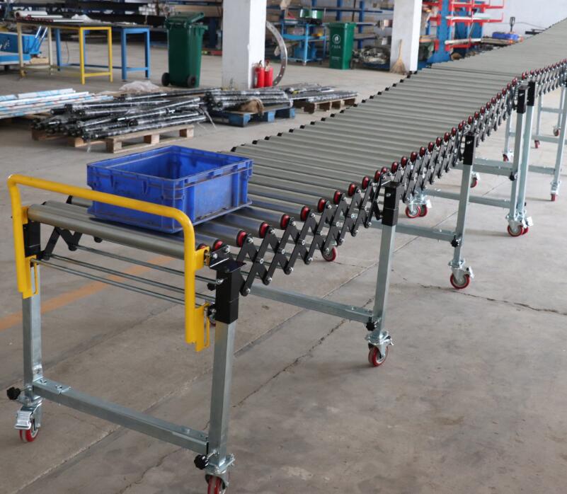伸縮滾筒輸送機(jī)耐磨、防腐,使用壽命長(zhǎng),保養(yǎng)維修方便,運(yùn)行平穩(wěn)。輸送能力大,輸送距離長(zhǎng),同時(shí)完成多種操作,承載能力大,轉(zhuǎn)速可調(diào),可以快速均勻平穩(wěn)的輸送貨物。