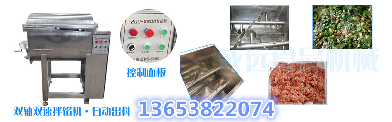 聚凱機械bx-60/100/200/350/600拌餡機餛飩水餃拌餡機適用于混料的必備設備,效率高,便于操作,是餛飩水餃加工必備設備,同時也是制做風干腸產(chǎn)品,也是生產(chǎn)各種菜餡的必備設備,本產(chǎn)品適用于大型,中型,小型加工企業(yè),單位廚房,小型店鋪,飯店,是賓館,酒店的必備設備。該機適用于各類食品、熟食、肉類及半流體混合物的拌合,采用雙螺旋拌翅,拌料均勻,效率高,設有自動翻轉機構,使其出料十分方便。結構采用鏈條傳動,確保傳動平穩(wěn),有刀,低噪聲。拌餡機是用于混料的必備設備,效率高,便于操作,是制作風干腸類產(chǎn)品、粒狀、泥狀混合腸類產(chǎn)品設備,同時也是生產(chǎn)水餃、餛飩類面食產(chǎn)品的可選設備。
