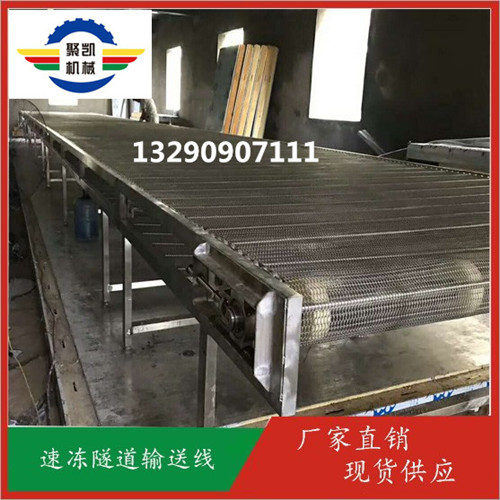 餃子輸送帶是冷凍食品廠、餃子 湯圓等速凍食品廠專用冷凍輸送自動(dòng)化流水線設(shè)備,分為:餃子輸送帶、分散擺頭、爬坡提升輸送機(jī)、噴淋系統(tǒng)等冷庫制作輸送整套不銹鋼流水線專業(yè)研發(fā)