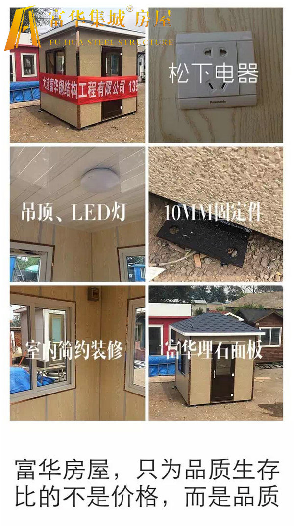 大連收費亭,大連門衛(wèi)房,大連小木屋廠家生產(chǎn)商:大連富華鋼結(jié)構(gòu)工程有限公司 李富華(電話:139-4280-7208 ,其他均非官方,謹(jǐn)防詐騙) 全國物流配送到家,物流貨到付款,安 全省心。http:// / http:// /