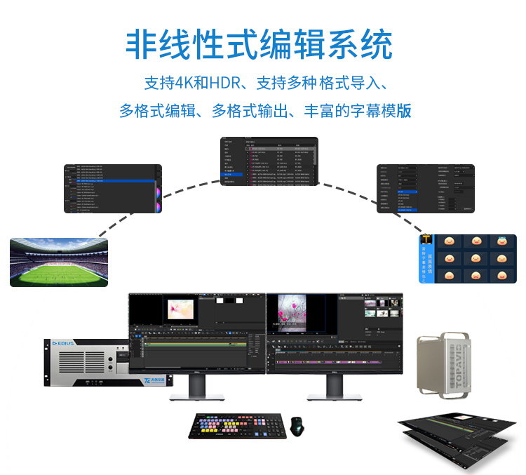 一套剪輯、調(diào)色、三維制作的非編設(shè)備。tc studio4k非編系統(tǒng)在穩(wěn)定性、多文件格式支持性、4k、高、標(biāo)清混合編輯的實(shí)時(shí)性、對(duì)新記錄介質(zhì)的兼容性上都表現(xiàn)了良好的性能,是理想的新聞、專題片、宣傳片后期制作平臺(tái),集、4k、高、標(biāo)清視頻編輯、高清藍(lán)光影碟發(fā)布于一體的非線性編輯系統(tǒng)?蓾M足電視臺(tái)、影視制作機(jī)構(gòu)、高等教育機(jī)構(gòu)、企事業(yè)單位、視頻網(wǎng)站,多種制作及發(fā)布的需要
