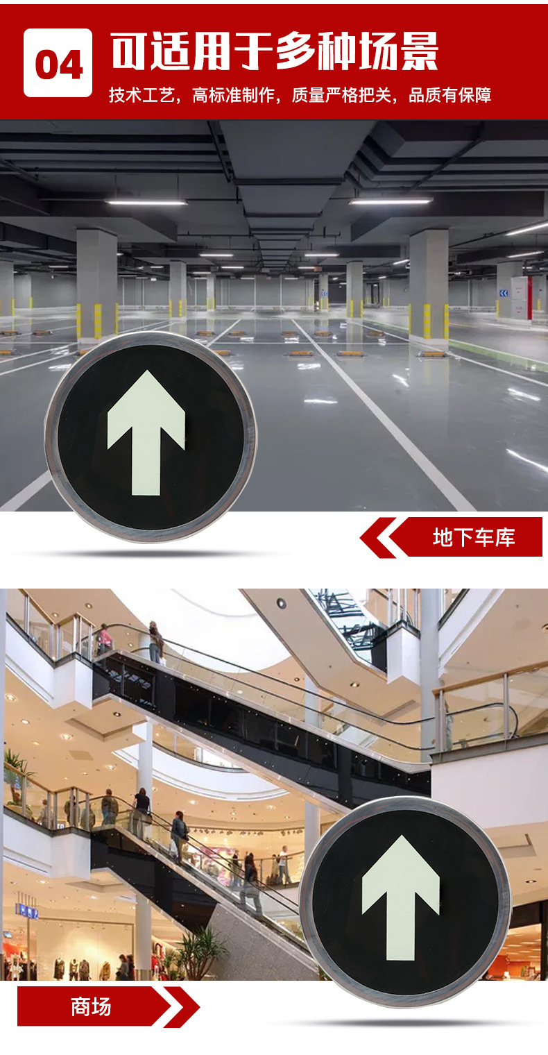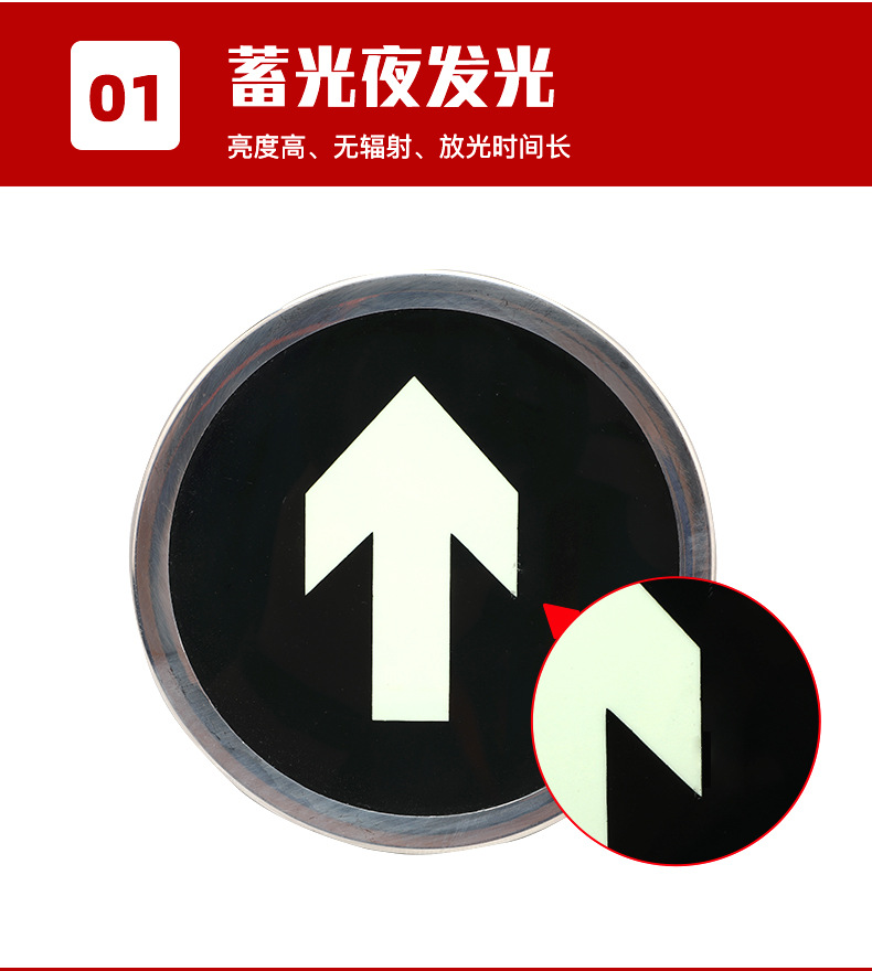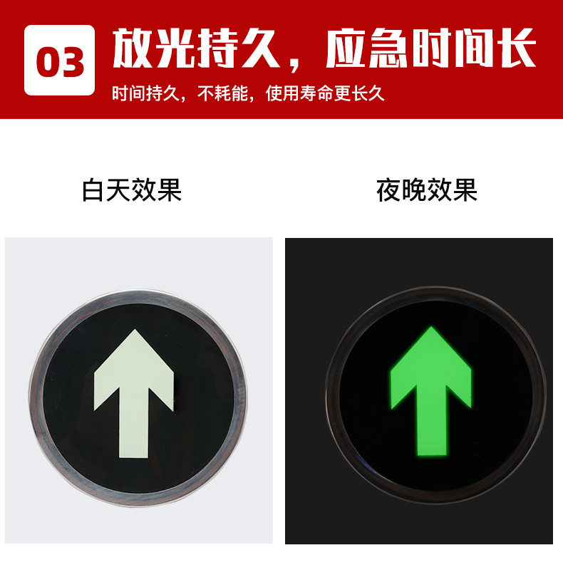 消防疏散標(biāo)識(shí)特點(diǎn) :稀土蓄光材料具有長(zhǎng)余輝、高亮度、無(wú)輻射、無(wú)需維護(hù)等優(yōu)點(diǎn),但因?yàn)榇水a(chǎn)品需要不間斷的 蓄放光,因此不可使用在常年無(wú)光照的環(huán)境中