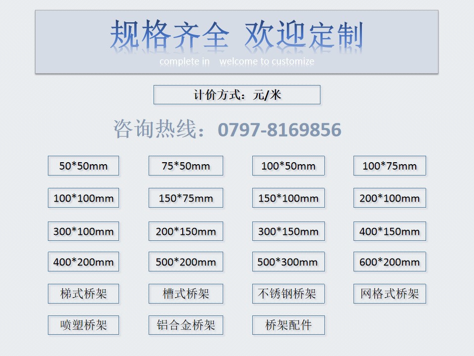經(jīng)營范圍 | 電纜橋架、高低壓電氣成套設(shè)備、母線槽、鍍鋅管、角鐵、PVC線槽、排水管、電線電纜、交通設(shè)施、電子元件、建筑材料、金屬制品、消防器材的生產(chǎn)及銷售;水利水電工程(不含電力設(shè)施的承裝、承修、承試)設(shè)計及施工。 |