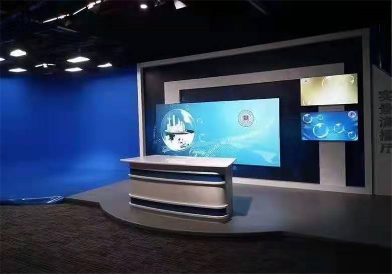 虛擬演播室系統(tǒng)組成按功能分為視頻、音頻、虛擬、通話(huà)、tally、藍(lán)箱燈光等子系統(tǒng)。簡(jiǎn)單描述其工作流程為:在演播室搭建一個(gè)藍(lán)箱替代實(shí)景演播區(qū)背,進(jìn)行高均勻度的布光。攝像機(jī)拍攝主持人在藍(lán)箱上的前景視頻信號(hào),并輸入到虛擬演播系統(tǒng)主機(jī)中。