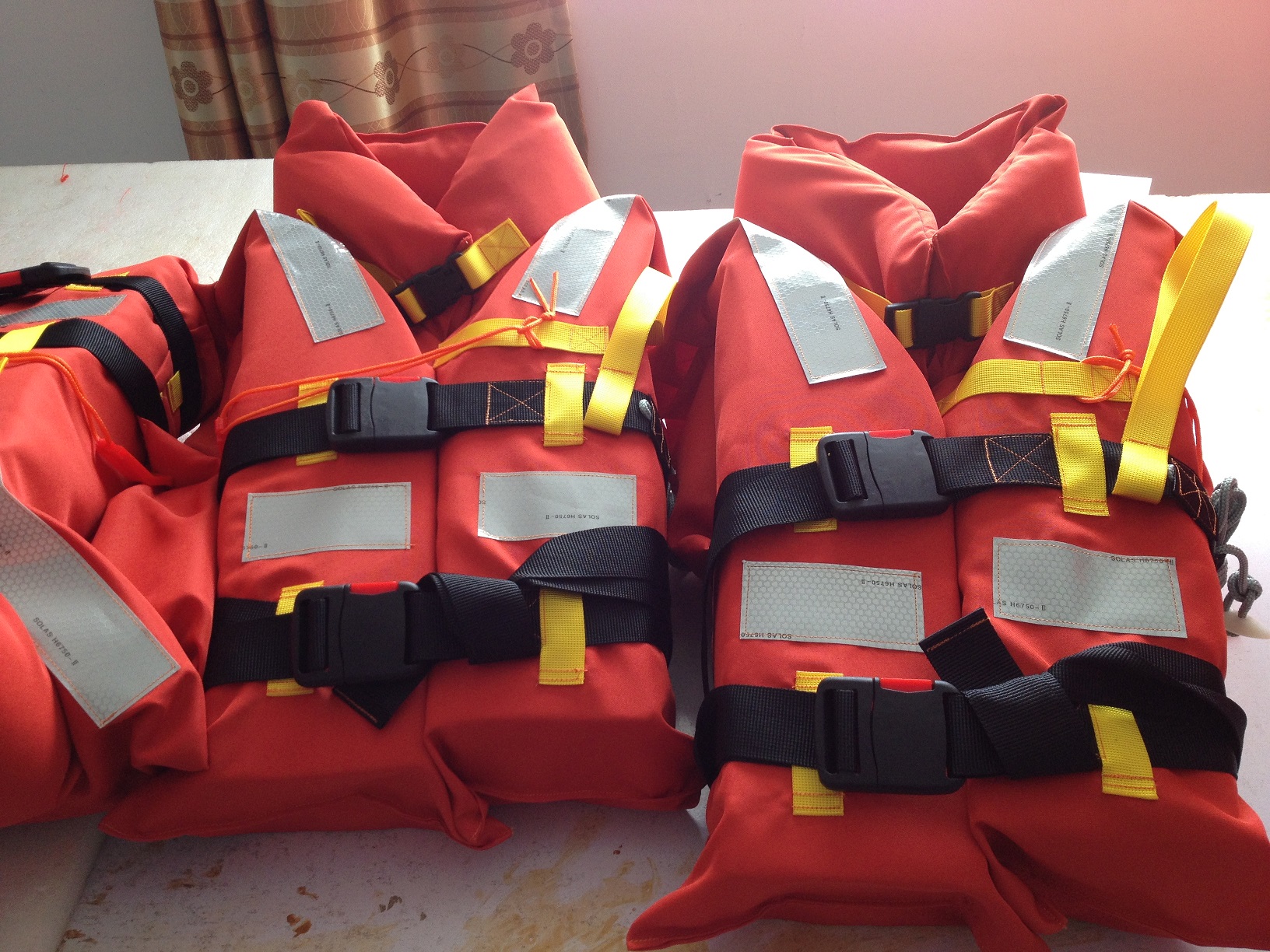 新標準船用救生衣適用于國際航行船舶及沿海、內河船舶船員和旅客救生使用。新標準船用救生衣配有救生口哨,遇險后后吹動口哨呼救。該救生衣還也可配可拋投的漂浮系帶,系在水中另1人穿著的救生服或者救生衣上,還配有可救援的提拉環(huán),讓救援人員將穿者托出水面送入救生艇或救生筏內。