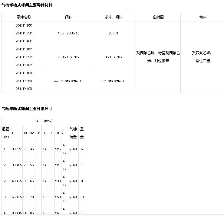 產(chǎn)品名稱:氣動浮動式球閥產(chǎn)品型號:q641產(chǎn)品口徑:dn15-200產(chǎn)品壓力:0.6~10.0mpa產(chǎn)品材質(zhì):鑄鋼、不銹鋼、合金鋼等產(chǎn)品簡介:制造標(biāo)準(zhǔn):中國gb、機(jī)械部jb、化工標(biāo)準(zhǔn)hg、美標(biāo)api、ansi、德標(biāo)din、日本jis、jpi、英標(biāo)bs生產(chǎn)。閥體材質(zhì):銅、鑄鐵、鑄鋼、碳鋼、wcb、wc6、wc9、20#、25#、鍛鋼、a105、f11、f22、不銹鋼、304、304l、316、316l、鉻鉬鋼、低溫鋼、鈦合金鋼等。工作壓力1.0mpa-50.0mpa。工作溫度:-196℃-650℃。連接方式:內(nèi)螺紋、外螺紋、法蘭、焊接、對焊、承插焊、卡套、卡箍。驅(qū)動方式:手動、氣動、液動、電動。上;菹拈y門有限公司擁有全球最頂尖的生產(chǎn)設(shè)備和技術(shù)工程師,有能力按照各國標(biāo)準(zhǔn)以及各種行業(yè)標(biāo)準(zhǔn)生產(chǎn)制造優(yōu)質(zhì)閥門。聯(lián)系電話:021-51877967 產(chǎn)品詳情氣動浮動式球閥主要性能規(guī)范型 號公稱壓力pn(mpa)試驗(yàn)壓力ps(mpa)工作溫度(℃)適用介質(zhì)殼 體密封(液)密封(氣)q641f-16c1.62.41.760.6聚四氟乙烯-20-150增強(qiáng)聚四氟乙烯-20-180金屬鑲嵌封位聚苯 -20-250水、油品等q641f-25c2.53.752.75q641f-40c4.06.04.4q641f-16p1.62.41.76硝酸 類q641f-25p2.53.752.75q641f-40p4.06.04.4q641f-16r1.62.41.76醋酸 類q641f-25r2.53.752.75q641f-40r4.06.04.4
