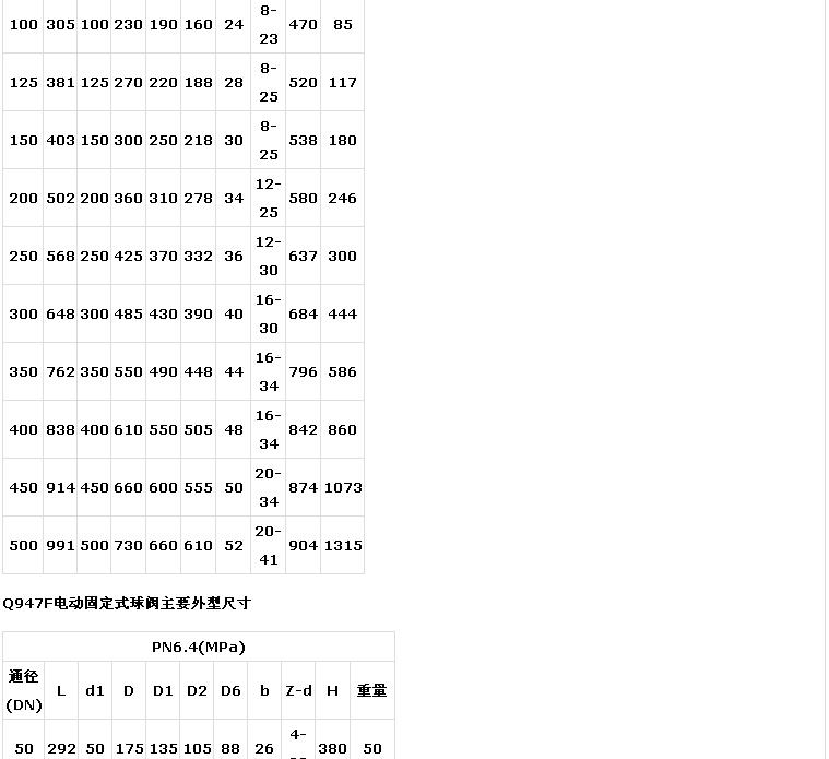 產(chǎn)品名稱:電動固定式球閥產(chǎn)品型號:q947f產(chǎn)品口徑:dn15-250產(chǎn)品壓力:0.6~6.4mpa產(chǎn)品材質(zhì):鑄鋼、不銹鋼、合金鋼等產(chǎn)品簡介:制造標準:中國gb、機械部jb、化工標準hg、美標api、ansi、德標din、日本jis、jpi、英標bs生產(chǎn)。閥體材質(zhì):銅、鑄鐵、鑄鋼、碳鋼、wcb、wc6、wc9、20#、25#、鍛鋼、a105、f11、f22、不銹鋼、304、304l、316、316l、鉻鉬鋼、低溫鋼、鈦合金鋼等。工作壓力1.0mpa-50.0mpa。工作溫度:-196℃-650℃。連接方式:內(nèi)螺紋、外螺紋、法蘭、焊接、對焊、承插焊、卡套、卡箍。驅(qū)動方式:手動、氣動、液動、電動。上;菹拈y門有限公司擁有全球最頂尖的生產(chǎn)設備和技術(shù)工程師,有能力按照各國標準以及各種行業(yè)標準生產(chǎn)制造優(yōu)質(zhì)閥門。聯(lián)系電話:15901687301 產(chǎn)品詳情q947f電動固定式球閥主要性能規(guī)范型 號試驗壓力ps(mpa)工作溫度(℃)適用介質(zhì)殼 體密封(液)密封(氣)q947f-101.5pn1.1pn0.6 mpa-29-200(加玻纖增強聚四氟乙烯)、-29-300(對位聚苯 )水、蒸汽、油品等q947f-16硝酸 等腐蝕性介質(zhì)強氧化性介質(zhì)q947f-25q947f-64醋酸 等腐蝕性介質(zhì)q947f-160尿素 等腐蝕性介質(zhì)q947f電動固定式球閥主要零件材料