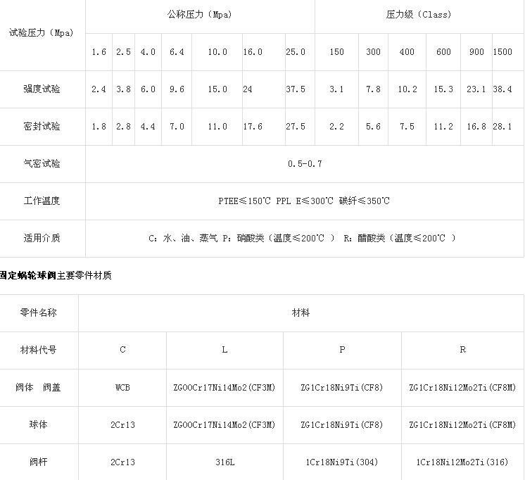 固定蝸輪球閥主要性能規(guī)范