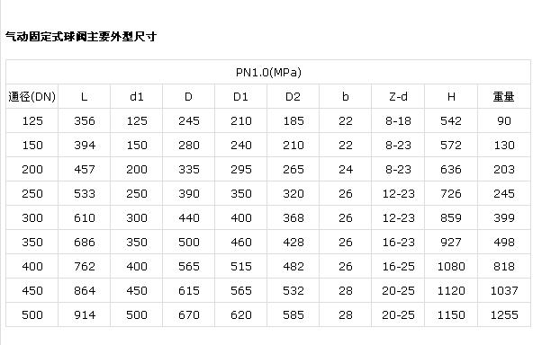 氣動固定式球閥主要外型尺寸