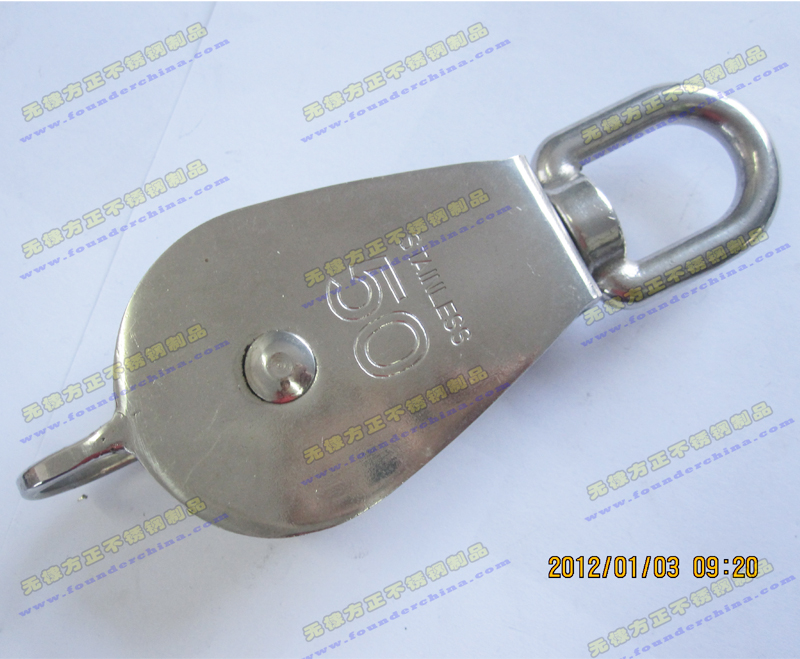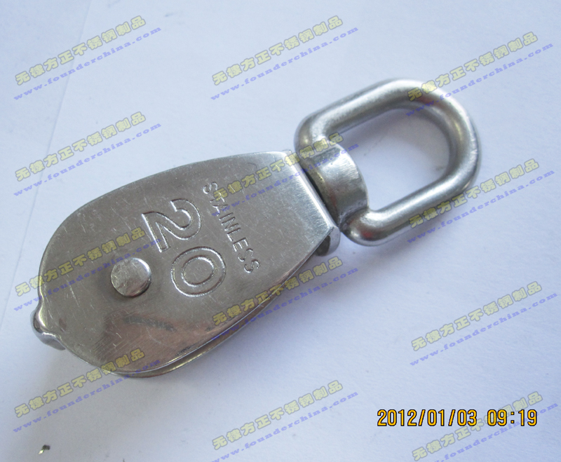 滑輪的輪子和轉(zhuǎn)圈是鑄造工藝的,板身是板材沖壓的,通過(guò)焊接而成的;喅3Ec繩子互相連用。