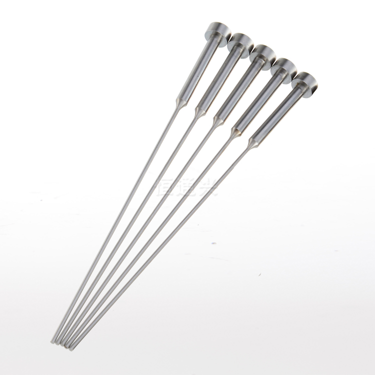 產(chǎn)品特點(diǎn):一般情況下,模具零件的硬度越高,磨損量越小,耐磨性也越好。模具的工作條件大多十分惡劣,有些常承受較大的沖擊負(fù)荷,從而導(dǎo)致脆性斷裂。為防止模具零件在工作時突然脆斷,模具頂針要具有較高的強(qiáng)度和韌性。