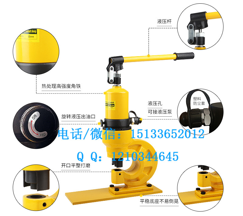 霸州電力器材廠生產(chǎn)沖孔機,電動打孔機器含油管 液壓沖孔機 小型角鋼角鐵打孔機 ,打孔機,開孔機,角鐵手搖鉆,擴孔器等工具 液壓沖孔機 沖孔機是施工作業(yè)中,對于銅鋁排,鋼板,電動打孔機器含油管 液壓沖孔機 小型角鋼角鐵打孔機 ,其他型材進行沖孔工作,根據(jù)戶外場地實際情況,有液壓沖孔機,有機械沖孔機,電動打孔機器含油管 液壓沖孔機 小型角鋼角鐵打孔機 ,機械沖孔機的特點是攜帶方便,能夠進行高空作業(yè)或者攜帶不方便的場所進行作業(yè),液壓沖孔機電動打孔機器含油管 液壓沖孔機 小型角鋼角鐵打孔機 是進行大量作業(yè)或者,省力作業(yè)時使用的工具電動打孔機器含油管 液壓沖孔機 小型角鋼角鐵打孔機 。產(chǎn)品名稱 型號 出力 喉深 最大厚度 重量 液壓沖孔機ch-6031t95mm 10mm17.6kg 液壓沖孔機ch-7035t110mm 12mm 35kg液壓沖孔機ch-8050t 120mm16mm45kg液壓沖孔機ch-100100t 130mm20mm100kg電動打孔機器含油管 液壓沖孔機 小型角鋼角鐵打孔機 功能說明