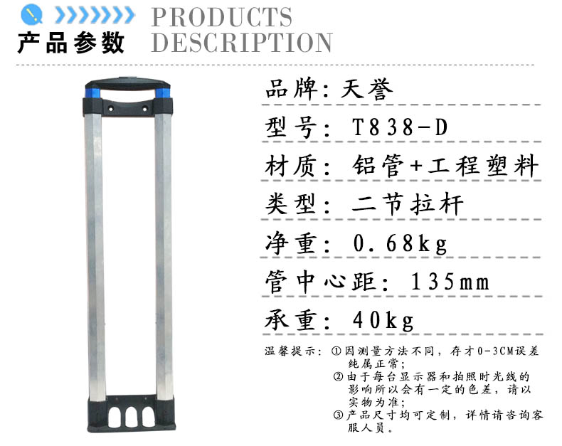 隨著社會不斷的發(fā)展,箱包配件拉桿廠家也需要在設計上不斷的改革創(chuàng)新,每一家公司只有在不斷的尋求創(chuàng)新下才能生存下去,每年東莞天譽作為箱包配件拉桿廠家都會用用上百萬的費用用于研發(fā)新的產品,為了產品能夠適用于行業(yè)更多,在箱包拉桿的基礎上做了很大的調整,東莞天譽箱包配件拉桿廠家在拉桿產品使用上無論是結構還是材質的使用都經(jīng)過了多項測試,以至于現(xiàn)在的拉桿廣泛用于工具箱、音箱、書包、儀器設備等等。