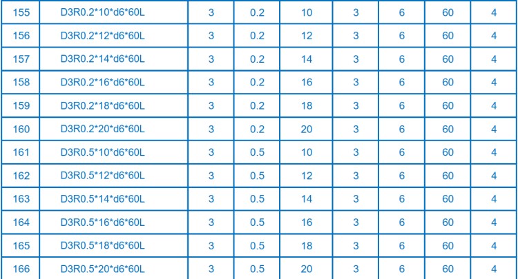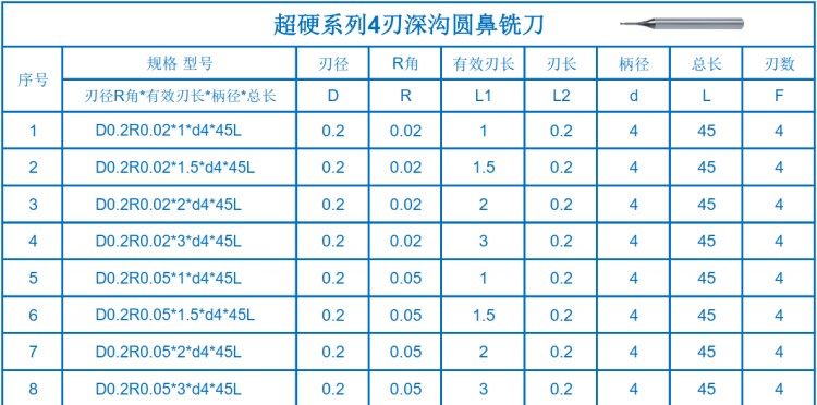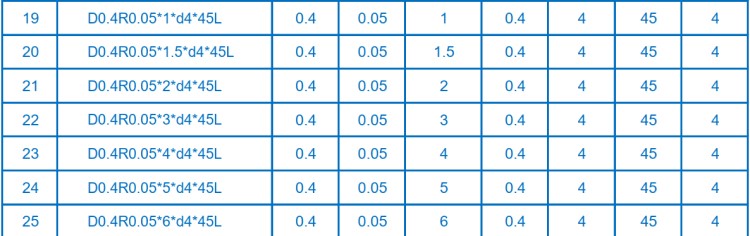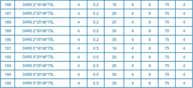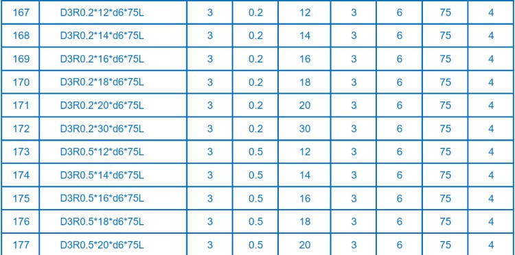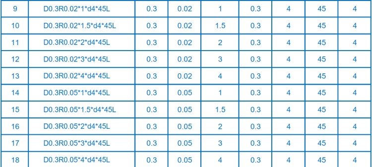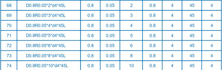 規(guī)格:刃徑R角*刃長(zhǎng)*柄徑*總長(zhǎng)*刃數(shù) | 數(shù)量:10239支 | |
