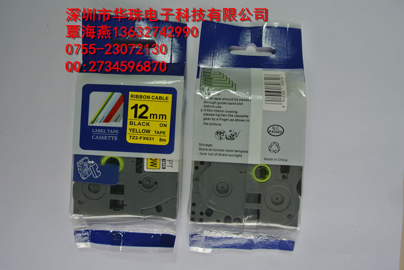 tz系列國產(chǎn)色帶tz2-fx631線纜色帶電力電信纏繞式標(biāo)簽 黃底黑字 12mm