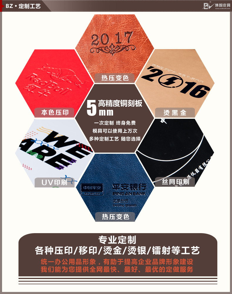 博智皮具文具專業(yè)定制皮面記事本,以高層次禮品市場(chǎng)為其目標(biāo)市場(chǎng)。本公司以“質(zhì)量第一、誠(chéng)信經(jīng)營(yíng)”為經(jīng)營(yíng)理念,嚴(yán)把質(zhì)量關(guān),從制樣、開(kāi)模、選取材料直至手工制做過(guò)程中的每一個(gè)環(huán)節(jié),都力圖精益求精,認(rèn)真的把好每個(gè)細(xì)小的環(huán)節(jié);我們?cè)诋a(chǎn)品設(shè)計(jì)上投入了很大的精力,洞察消費(fèi)者需求的變化結(jié)合國(guó)際潮流的發(fā)展,皮具種類(lèi)和款式不斷的推陳出新,品質(zhì)上不斷有所突破,打造精品市場(chǎng)中的王者品牌。同時(shí),可按客戶...