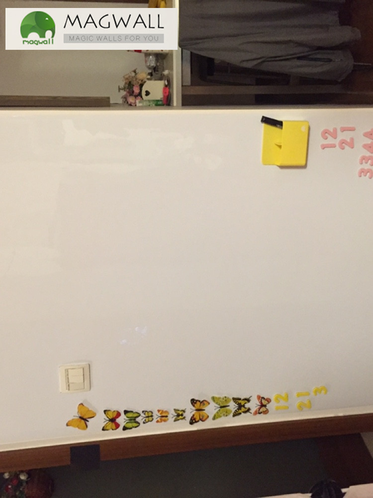 磁善家磁性白板采用雙層結(jié)構(gòu),底層為具有磁性的磁底,磁底自帶背膠,可直接貼在墻面上;面層為pvc膜材料制作而成的可卷曲書寫層,揭取方便,邊角整齊不起翹,書寫時流暢不打滑,擦洗更干凈。而且面層支持個性定制,客戶可根據(jù)自己需要選取模板或者提供原稿給磁善家進(jìn)行噴繪定制!