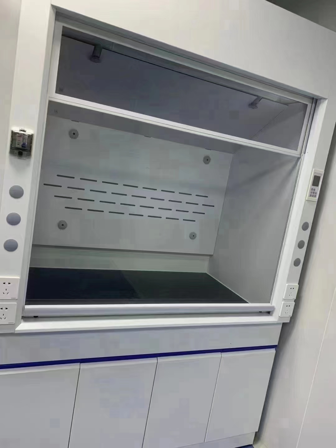(6)照明:采用圓形節(jié)能孔燈,隱藏于頂板上,不與通風(fēng)柜內(nèi)實(shí)驗(yàn)氣體直接接觸,易更換,亮度完全滿足實(shí)驗(yàn)要求。