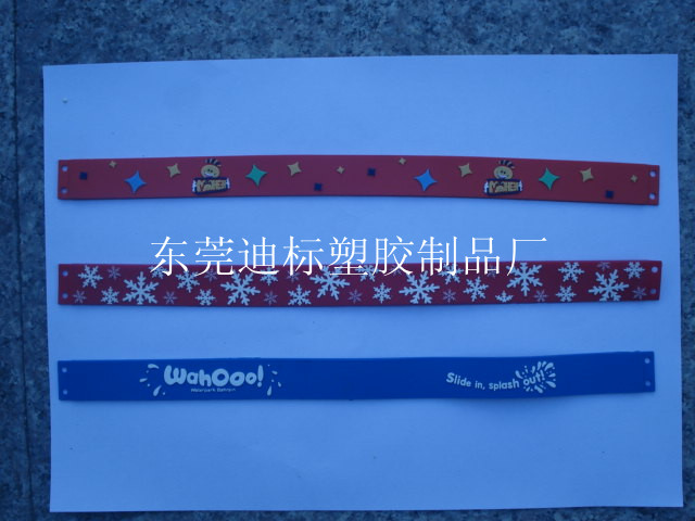 pvc手腕帶采用pvc軟膠制成,美觀大方,形象逼真,時尚高檔.是您送給心儀姑娘理想禮品.也是廠家廣告宣傳的時尚贈品.規(guī)格、顏色、卡通形象可根據(jù)客戶要求定做.個人飾品、商務禮品,腕帶還是彰顯個性的好飾品,比如一個晚會派對,主辦方會給每位客人發(fā)一個夜光腕帶,能大大增加現(xiàn)場的氣氛。除了可加印logo外,廠家還能在腕帶上印制各種圖案、制造凸凹效果,而且顏色各異,是目前廣告促銷或公益宣傳首選!