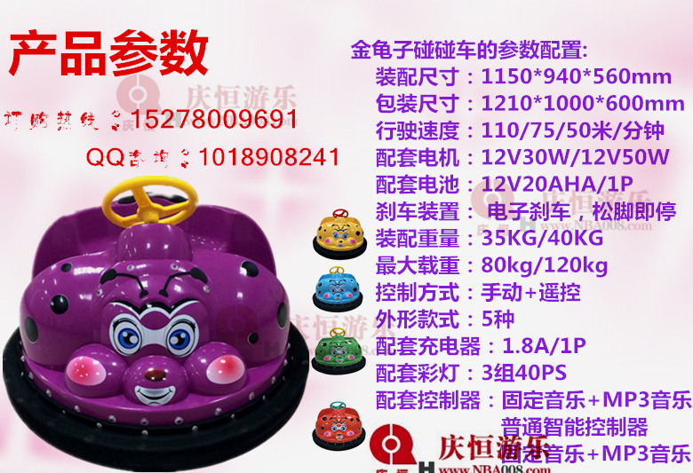 兒童游樂(lè)設(shè)備廠家直銷(xiāo),湖南婁底金龜子碰碰車(chē),慶恒游樂(lè)親子碰碰車(chē)適合于多種游樂(lè)場(chǎng)所,無(wú)須鋪設(shè)專(zhuān)用地板,光滑地面均可使用!我們是最專(zhuān)業(yè)、產(chǎn)品最齊全的游樂(lè)設(shè)備廠家,主要的產(chǎn)品涉及到各種場(chǎng)地的游樂(lè)設(shè)備,如戶(hù)外、廣場(chǎng)兒童、公園兒童、室內(nèi)兒童、大型小型兒童等等。我們是集生產(chǎn)與銷(xiāo)售于一體的現(xiàn)代化企業(yè)。多年來(lái)致力于各種游樂(lè)設(shè)備的研發(fā)設(shè)計(jì),引領(lǐng)兒童游樂(lè)園、兒童游樂(lè)設(shè)施時(shí)尚,秉承質(zhì)量第一、客戶(hù)至上的理念,將公司的優(yōu)秀游樂(lè)設(shè)備及增值服務(wù)傳遞給全國(guó)各地的游樂(lè)設(shè)備投資者。