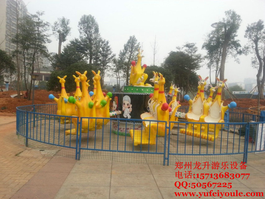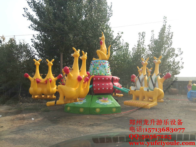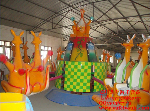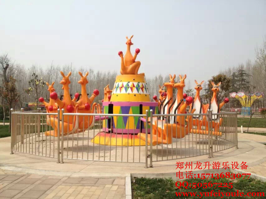歡樂袋鼠”是一款以彈跳形式前進的彈跳機系列產(chǎn)品,在“狂車飛舞”游樂設施基礎上更進一步開發(fā)的新型游樂設備,乘客乘坐在袋鼠造型的座椅上,隨著節(jié)奏蹦跳起伏,