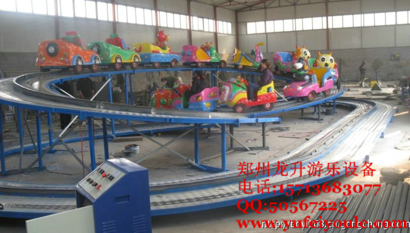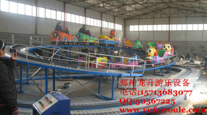 迷你穿梭是在立交式軌道上行駛的一種新型軌道類游樂設備,它是由15輛造型精美、風格各異的車組成,各自驅動同步行駛,沿軌道方向穿梭于立式軌道上,配有五彩繽紛的彩燈、音響及兒童卡通畫裝飾。