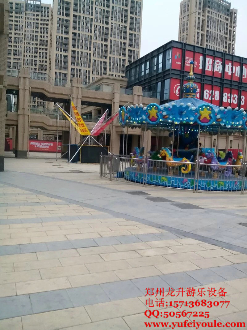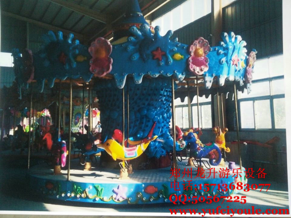 海洋樂(lè)園擁有富麗堂皇的外觀,精美華麗的裝飾內(nèi)涵,磅礴的氣勢(shì),絢麗的燈飾和高貴典雅的造型,猶如一頂旋轉(zhuǎn)的皇冠。當(dāng)上下層旋盤(pán)正反方向旋轉(zhuǎn)的時(shí)候,游客乘坐在色彩斑斕,形態(tài)各異的海洋動(dòng)物上奔騰跳躍,四蹄生輝,仿佛 置身仙境般的童話海洋世界,瞬間的夢(mèng)想由此開(kāi)始向無(wú)窮的天際放飛。能夠睜大孩子們羨慕的眼光,讓音樂(lè)永遠(yuǎn)不離場(chǎng),是否你也想來(lái)這里暢想?