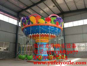 安 全系數(shù)高,做您孩子的貼心游樂保姆。水果旋風(fēng)電動(dòng)旋轉(zhuǎn)飛椅 新型公園游樂設(shè)施,也稱水果飛椅,是小