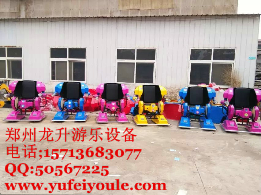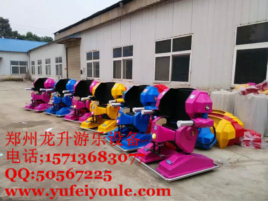 造型科幻、霸氣,燈光絢麗,乘坐方式獨特,吸引力無法抗拒,是游樂產(chǎn)品設計的一次重大突破。飛行雙搖桿操作,乘客可自由、輕松掌控行駛方向,可前進、后退、原地360度旋轉(zhuǎn)、趣味性超強;高保真動感mp3音樂智能播放,內(nèi)置sd卡插口,用戶可隨意更換歌曲,音量大小還可自由調(diào)節(jié);全數(shù)字控制系統(tǒng),語音報數(shù)功能及電腦計數(shù)功能雙重保障,確保記錄準確;另設有0-60分鐘數(shù)字定時器,方便經(jīng)營管理!