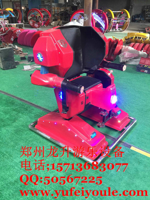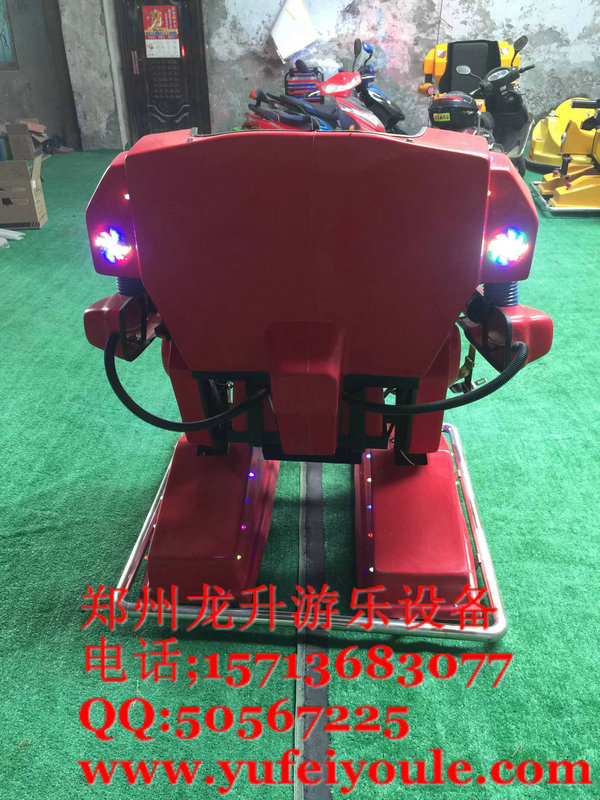 金鋼俠站立行走車—是鄭州龍升公司的又一成功力作,國(guó)內(nèi)獨(dú)創(chuàng)專利產(chǎn)品! 造型科幻、霸氣,燈光絢麗,乘坐方式獨(dú)特,吸引力無法抗拒,是游樂產(chǎn)品設(shè)計(jì)的一次重大突破。飛行雙搖桿操作,乘客可自由、輕松掌控行駛方向,可前進(jìn)、后退、原地360度旋轉(zhuǎn)、趣味性超強(qiáng);高保真動(dòng)感mp3音樂智能播放,內(nèi)置sd卡插口,用戶可隨意更換歌曲,音量大小還可自由調(diào)節(jié);全數(shù)字控制系統(tǒng),語(yǔ)音報(bào)數(shù)功能及電腦計(jì)數(shù)功能雙重保障,確保記錄準(zhǔn)確;另設(shè)有0-60分鐘數(shù)字定時(shí)器,方便經(jīng)營(yíng)管理!