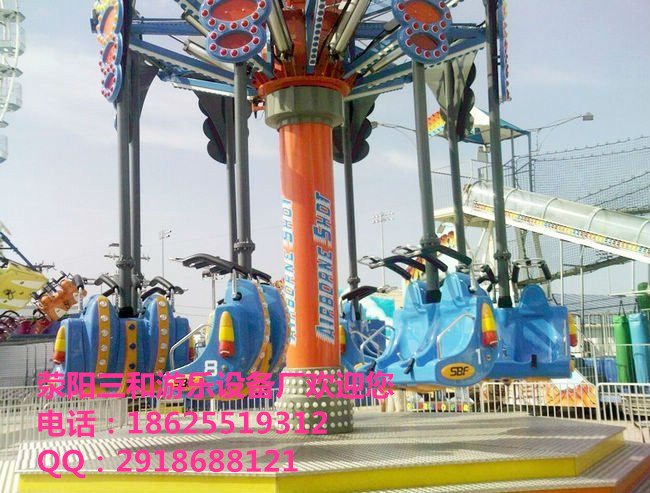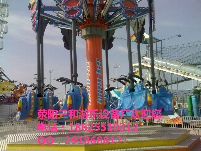 空中射擊是三和游樂設(shè)備廠最新從國外引進的一種新型游樂設(shè)備。該游樂設(shè)備類似于我國的飛椅,但是比飛椅的趣味性更強。不僅在空中旋轉(zhuǎn)而且可以按按鈕達到射擊的效果。