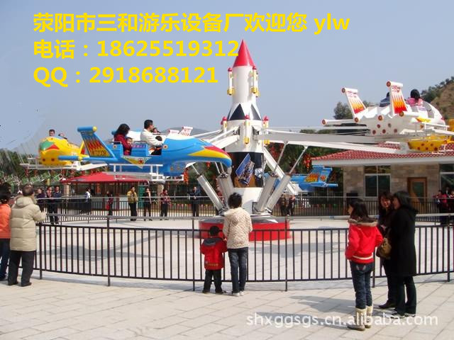 “自控飛機(jī)”是我公司新近開發(fā)產(chǎn)品之一,具有客流量大,造型精美、燈光輝煌等特點(diǎn),項(xiàng)目采用變頻無極控制,隨著音樂的開動(dòng)變速快速轉(zhuǎn)動(dòng),高底起伏,趣味無限,可乘坐多人,擁有多個(gè)座艙,讓您感受到游樂設(shè)備為您帶來的愉悅和刺激。