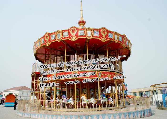 我廠生產(chǎn)的旋轉(zhuǎn)木馬有6座、12座、16座、24座、48座等多種規(guī)格供用戶選擇,其中48座為雙層轉(zhuǎn)馬,旋轉(zhuǎn)木馬是在一個(gè)旋轉(zhuǎn)的平臺(tái)上有座位供游客乘坐,這些座位傳統(tǒng)上都會(huì)裝飾成木馬,