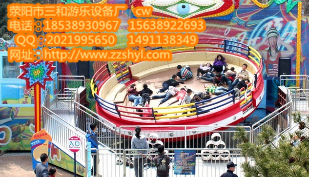迪斯科轉盤游樂設備又名大家顫,太空迪斯科,它是一種常見的游樂設施,鄭州童趣園里就有。它是一個大圓盤,能翻滾,轉動做十多種運動。游客就在大圓盤上的沙發(fā)上圍坐成一周,伴隨富有節(jié)湊的音樂,身體隨著圓盤運動。當人坐在上面時,并不是固定的!圓盤運行時如大海波濤顛簸起伏,又如太空飛碟,變化無窮,時快時慢。迪斯科轉盤轉盤是陀螺類高速回轉大型游樂設備。游客乘坐的吊箱在強離心力作用下,高速旋轉翻飛,仿佛 被推入超越時空的天體,翻江倒海,天旋地轉,驚心動魄的刺激,風馳快感,令人回味無窮。乘客緊緊吸俯在座艙,身體不再屬于自己,把一切交給可以信任的宇宙游樂設備,你只要緊緊抓住以此成功的機會,就可以實現(xiàn)內心的自我。讓耳旁呼呼的風聲伴隨你每一次完成的喜悅,勝利往往屬于勇敢者。迪斯科轉盤可以45°度旋轉,玩法是你坐在座位上,到了最高點,一震一上一下,就會從座位上摔下來。