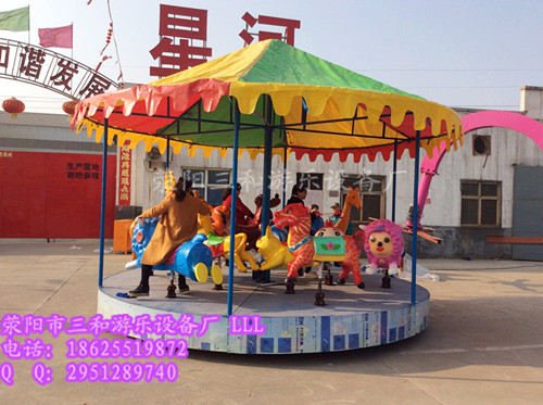 簡易轉(zhuǎn)馬,就是我們平時所說的簡易的旋轉(zhuǎn)木馬,其規(guī)格分為4座、8座以及16座的,其屬于非刺激性游樂設(shè)備,美麗的外觀以及美妙的音樂是吸引人的一部分,所以三和游樂設(shè)備廠生產(chǎn)的簡易轉(zhuǎn)馬外觀造型十分美麗獨(dú)特,深受兒童的喜愛。移動方便,回本快,小成本經(jīng)營的絕佳選擇,適合廣場,公園,幼兒園等多種場所
