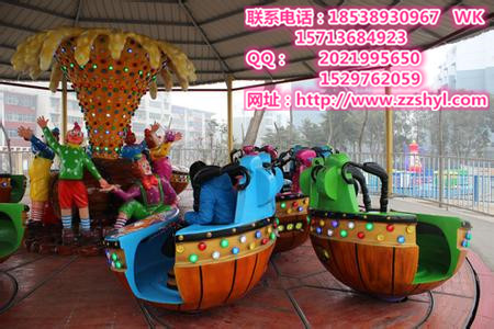 魔幻陀螺設備以漂亮的陀螺座艙為主題,中間造型以酒桶和小丑為主帶給人歡樂的氛圍,設備運轉(zhuǎn)時座艙呈360度旋轉(zhuǎn)并且可以交錯旋轉(zhuǎn),增加了設備的互動性和趣玩性,使游客在游玩中體會到無窮的樂趣。再加上座艙及中間造型上面五光十色的絢麗彩燈,使游客猶如置身于燈紅酒綠的舞廳世界、亦或是絢麗的溜冰 場。真可謂是老少、情侶、朋友都情有獨鐘的游樂設備。