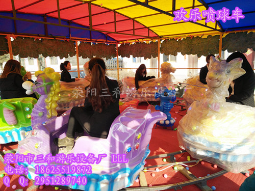 “歡樂噴球車”游樂設(shè)備內(nèi)的幾個火山口在設(shè)備啟動時同時自動循環(huán)噴出不少小球,并有設(shè)備自帶的動感音樂配合下,這時孩子就會過來看這是什么東西,激發(fā)了他們的探索欲,同時它打破了一般軌道類游樂設(shè)備的單一乘坐的游玩方式,它不光可以乘坐小車沿軌道行進,還可同時用抄子抄球,還可以用網(wǎng)打球,用手接球。在眾多小球噴出的同時鍛煉兒童的手眼協(xié)調(diào)能力,在小球落下的瞬間把球接住,連大人也樂此不疲的接球玩,游玩的過程充滿歡聲笑語。