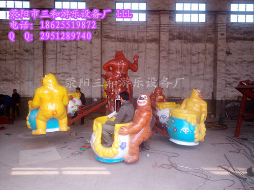 機(jī)械熊出沒是一種繞中心軸旋轉(zhuǎn)升降的熊出沒類游藝機(jī),本游藝機(jī)是一種適合2--8歲兒童和8—(4)人乘座的室內(nèi)外游藝機(jī),本游藝機(jī)是由一臺(tái)單相電動(dòng)機(jī)驅(qū)動(dòng),兒童乘座在玻璃鋼熊抱罐模型上完成旋轉(zhuǎn),升降運(yùn)動(dòng)。
