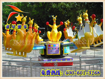 河南歡樂袋鼠跳,給乘客一種與眾不同的全新乘坐感受,歡樂袋鼠跳價格,是一項極佳的游樂設施投資選擇。袋鼠跳游樂設備是一款小型旋轉類游樂設備,設備以拳擊手袋鼠跳為設計原型,一般規(guī)格為6臂,可以乘坐12人,運行和彈跳機一樣為旋轉升降。本款設備采用國標鋼材和優(yōu)質(zhì)玻璃鋼生產(chǎn)加工而成,外表上采用精致的高級汽車烤漆工藝,搭配上動感的音樂,不論在廣場還是在公園都是一款人氣爆棚的游樂設備。
