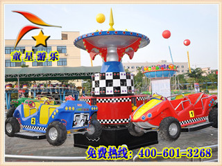 “狂車飛舞”是一款彈跳機(jī)的游樂設(shè)備,游客乘坐其中,繞中心旋轉(zhuǎn),同時飛車上下跳動,伴隨著動感刺激的音樂,在飛上飄下的傾斜回轉(zhuǎn)運動中,體驗超重、失重以及離心的感覺。新穎的造型,變幻的燈光裝飾,使游客仿佛 置身于逛飆的汽車中,游客特別是兒童流連忘返。